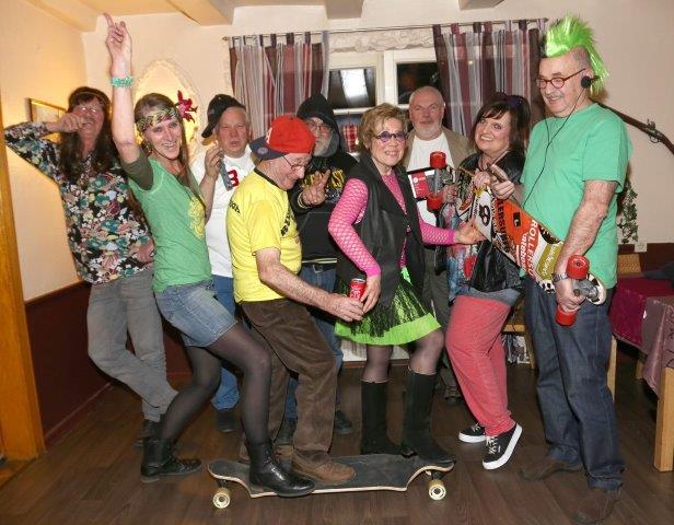 So windschnittig präsentierte sich das Redaktionsteam der Däller Rundschau zur Jubiläumsausgabe Nr. 50 im April 2016. Zu diesem Anlass wollten wir schon etwas Besonderes bringen. In einem rund 300 Seelen-Ort dreimal im Jahr eine Dorfzeitung mit 70 bis 90 Seiten kostenlos für jeden Haushalt in Altwindeck herauszugeben, daran hätte zu Beginn 1999 niemand geglaubt. Unsere Idee zum Geburtstag war es schließlich, den Traum von der ewigen Jugend aus Korn zu nehmen. Während andere viel Geld für Hilfsmittel wie Botox, Silikon, Schönheitsoperationen, falsche Fingernägel und andere Extravaganzen verballern, wollten wir zeigen, dass es gänzlich kostenfrei auch anders geht. Unser Rezept ist es, gemeinsam an einer Sache zu arbeiten, die uns und anderen Spaß macht. Also kramten wir in unseren Kleiderschränken, jeder suchte sich seine Rolle als Berufsjugendlicher selbst aus. Auf dem Bild sind von links die Hippies Franz Ottersbach und Sylvia Schmidt zu sehen, beide schwer berauscht und schnurstracks aus Woodstock eingeflogen. Dieter Steinhauf ist als bekennender Fußballfan außer Rand und Band und führt Hochprozentiges mit sich. Hennis vom Ackerbau gestählter Körper bringt sich windschnittig auf dem Skateboard in Positur. Jürgen Busch hat für unseren Fototermin auf eine Block-Party im New Yorker Untergrund verzichtet. Gisela Leschinger kommt gerade vom Speed-Dating, der Richtige war nicht dabei. Hans-Josef Heggen ist der Nerd, der nur versehentlich von seinem Tablet aufschaut. Marita Schmitt ist gänzlich überwältigt von Punker Egon Isnardy, beide sind wild entschlossen, sich von der Skater-Welle mitreißen zu lassen. Der Spaß, den wir an diesem Abend und zu vielen anderen Anlässen hatten, sind kostbare Erinnerungen, die unvergesslich sind. Der kleinste Kerl der munteren Truppe, Henni im gelben T-Shirt, hat dem Dorf viele Impulse gegeben. So war auch die Däller Rundschau seine Idee. Gegen viele Unkenrufe ließ er nicht locker, bis er einen kleinen Mitarbeiterstab zusammen hatte. Marita, Egon und Franz sind von Anfang an dabei gewesen und Henni war viele Jahre Chefredakteur.