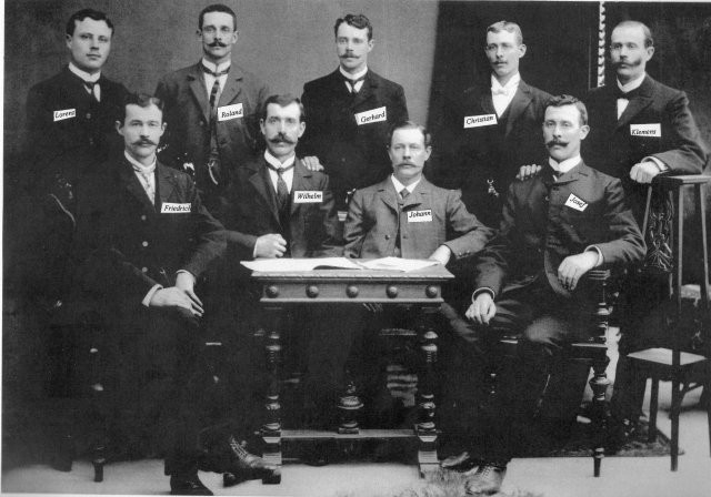 oben v. l.: Herr Lukisch, dahinter mit Hut Adolf Müller