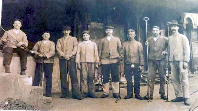Elmores Fabrik Schladern; Wilhelm ganz rechts mit Hut