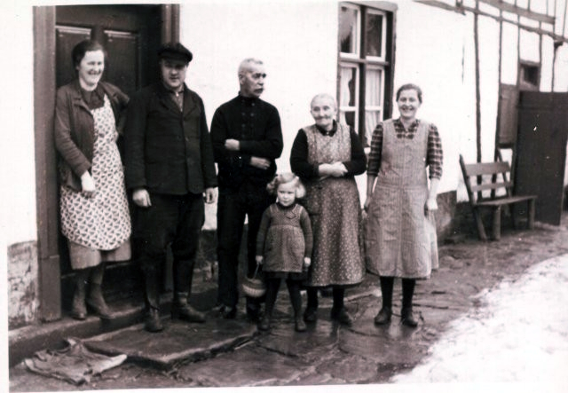 v. l. Oma Katharina Z. (1876-1961), Käthe (1936), Opa Wilhelm Z. (1871-1955), Franz Hundenborn (1904-1974) und seine Frau Katharina geb. Zimmermann (1903-1988).