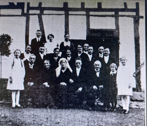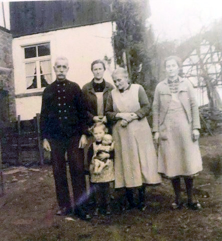 v. l. Gertrud Otterbach (1905-1985), Josef Zimmermann (1913-1945), Wilhelm Zimmermann (1871-1955), Kind Käthe, Katharina Z. (1876-1961), Katharina Hundenborn (1903-1988)