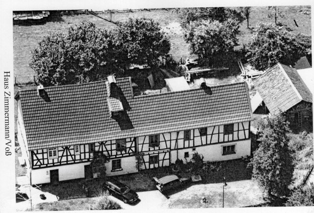 Im Hintergrund v. l.: Haus Baur, Haus Roland Müller, Voss Scheune.