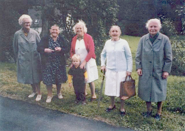 v. l.: Trautchen Ottersbach, Trautchen Kölschbach, Maria Pauly mit Urenkel Jens, Lina Merten, Trina Hundenborn