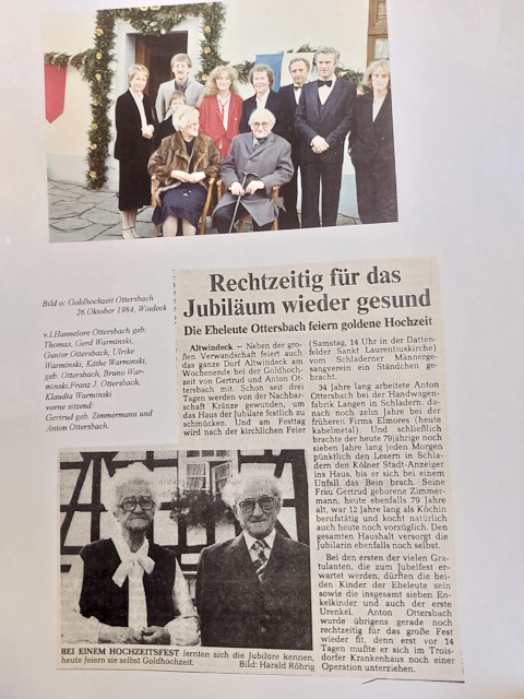 Mutter Gertud Zimmermann wurde am 28.02.1905 in Windeck als Tochter von Wilhelm Josef Zimmermann (19.03.1871 - 16.01.1955) und Katharina Ottersbach (17.08.1876 - 26.01.1961) geboren. Die Eheleute hatten vier Mädchen und zwei Jungen. Wilhelmine (1901), Wilhelm (1902), Katharina (1903, verh. mit Franz Hundenborn), Gertrud (1905), Maria (1907), Josef (1913).