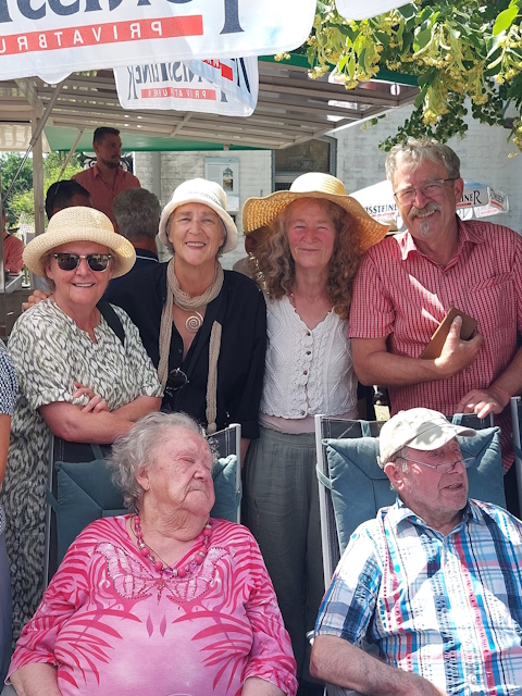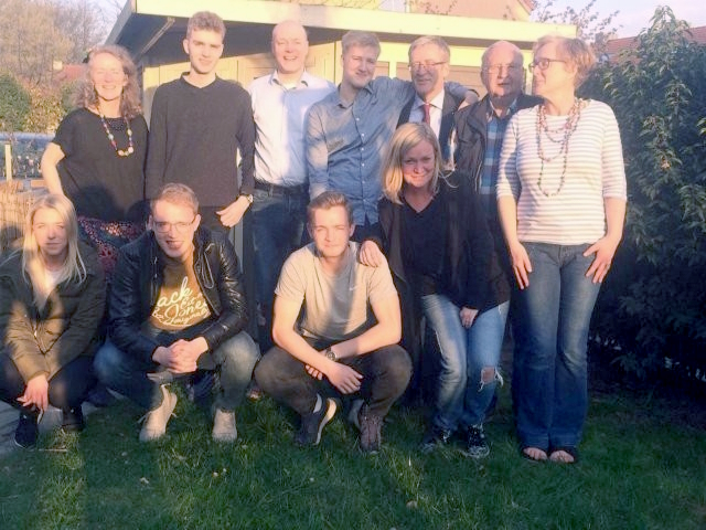 Hintere Reihe v. li.: Ulrike, Vincent, Detlef, Valentin (Ehemann und Söhne von Claudia), Gerd, Vater Bruno, Klaudia.