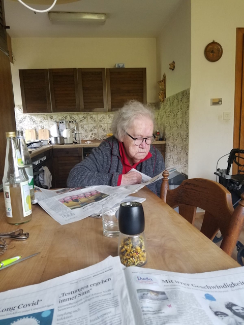 Auch im hohen Alter ist Käthe noch an allem interessiert. Sie geht regelmäßig sonntags ins Blumencafé zu ihrem Stammtisch, spielt „Mensch ärgere Dich nicht“, löst Rätsel.
