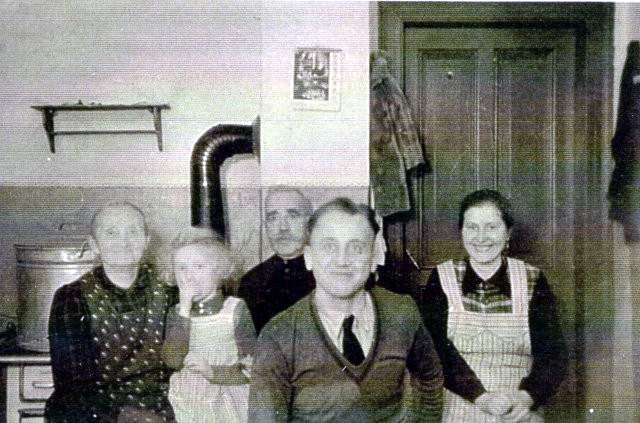 Die Familie Zimmermann am Abend in der Küche. Dieses Bild wurde Anfang des Krieges (1939 -1945) gemacht. Franz war der Fotograf, mittels Selbstauslöser.