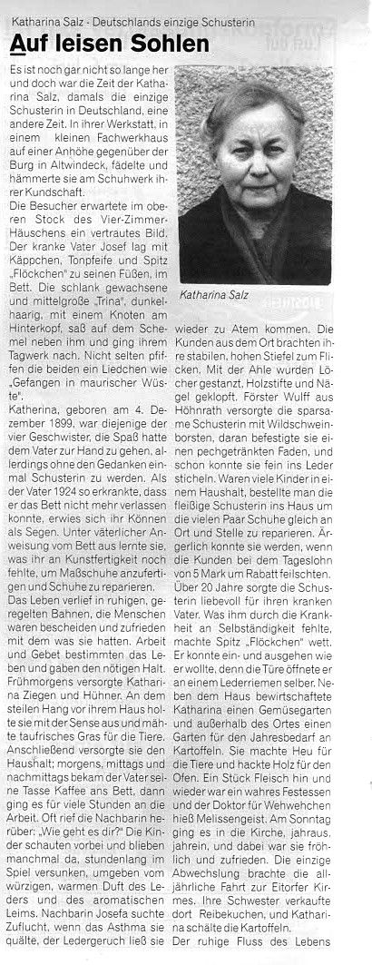 Auf leisen Sohlen - Katharina Salz, Deutschlands einzige Schusterin Zeitungsartikel | Personen, Betriebe | 08.12.1970 Weiterlesen