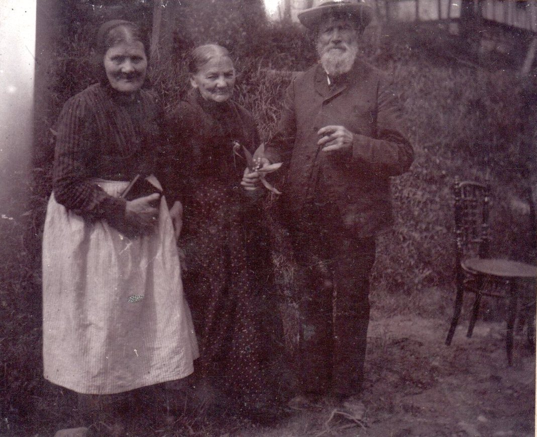"Mir ist aber heute aufgefallen, dass auf der Web-Site von WiWa unter der Rubrik „Alte Berger“ ein Foto aus dem Archiv von Elmar Höffer aus Schladern von zwei Frauen und einem Mann dargestellt ist. Es zeigt eindeutig meine Urgroßeltern: Katharina Kolb (geb. Bestgen) und Wilhelm Kolb. Das Foto liegt mir auch im Original vor. Ich dachte bisher, die Person links auf dem Bild sei Katharinas älteste Tochter Carolina Piller (*1860). Nun stellt sich heraus, dass es wahrscheinlich Katharina Höffer (*1826) ist– eine Schwester meines Urgroßvaters Wilhelm Kolb.