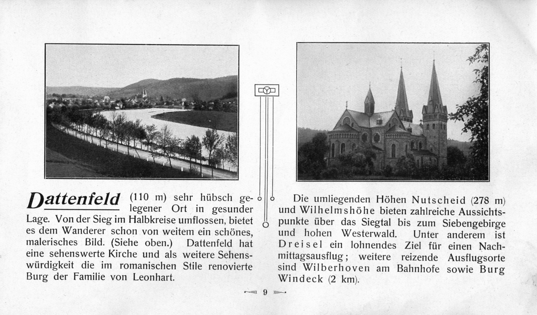 Dattenfeld um 1903 Zeitungsartikel | Kirchen | 01.01.1903 Quelle: Dietzgen, Albert, Führer durch das Sieg-Tal in Wort und Bild, Verkehrsverein für die mittlere Sieg (Herausgeber), um 1903. Dattenfeld Zurück Weiter