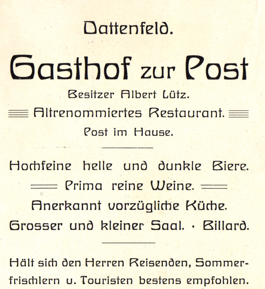 Werbeanzeige Gasthof zur Post um 1903