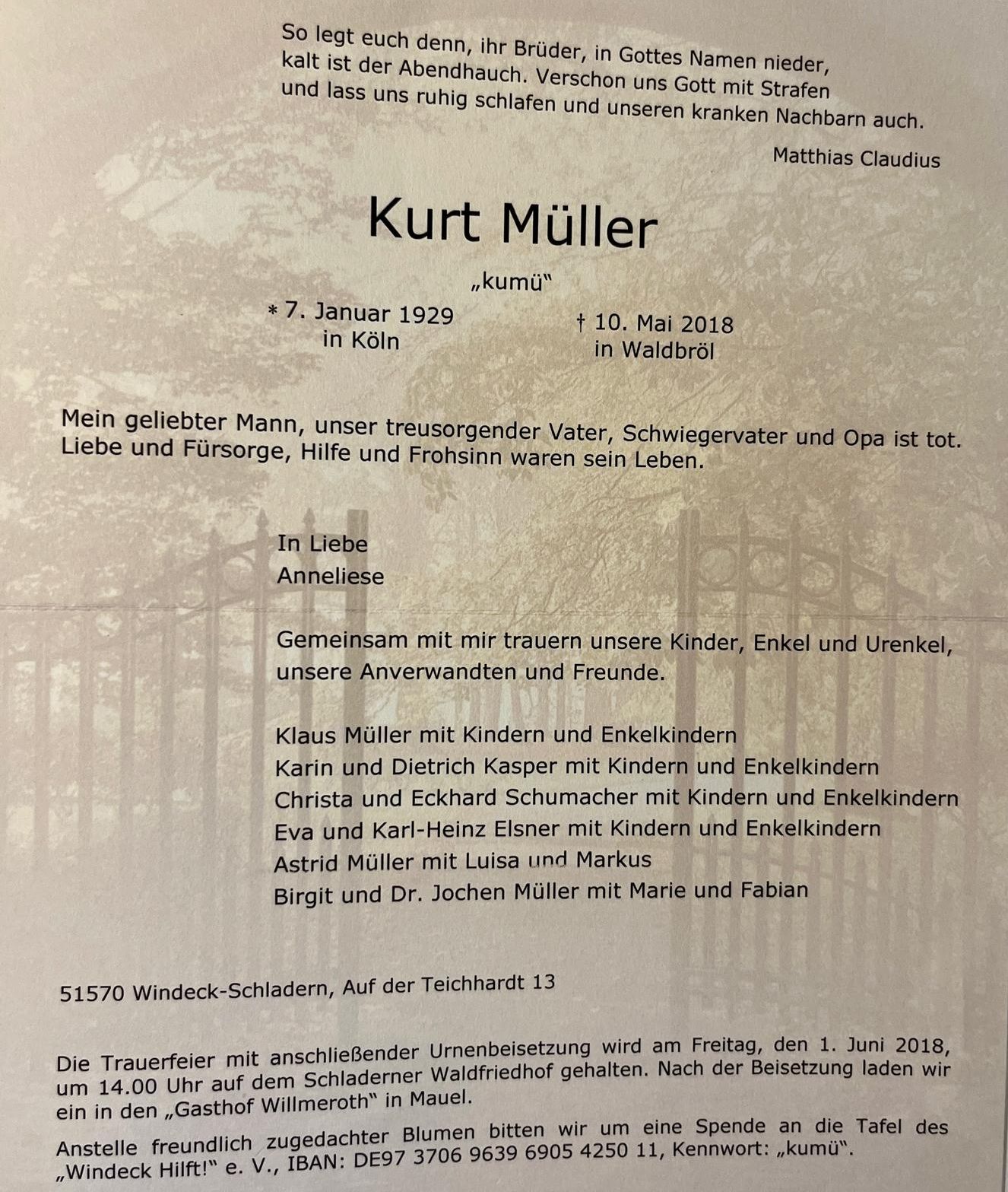 Aus dem Leben von Kurt Müller aus Schladern