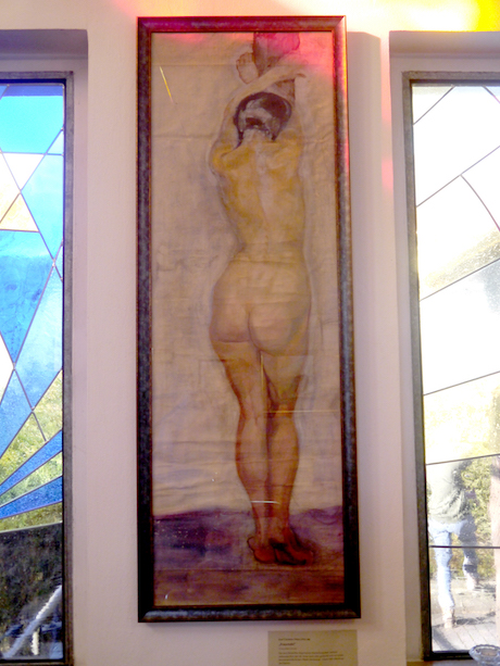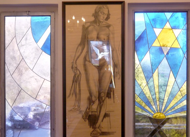 Zwei Frauenakte von Karl C. Peters, das erste mit Spiegelung der Kirchenfenster in der Friedenskirche in Schladern.