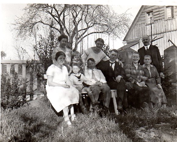 mittlere Reihe von links: Oma Margarete Döring, Oma Wilhelmine Pickhardt, Käthe Förster, Helmut Förster, Änne Döring