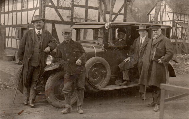 Links: F.W Pickhardt 1922 mit Fahrer Lenz am Steuer